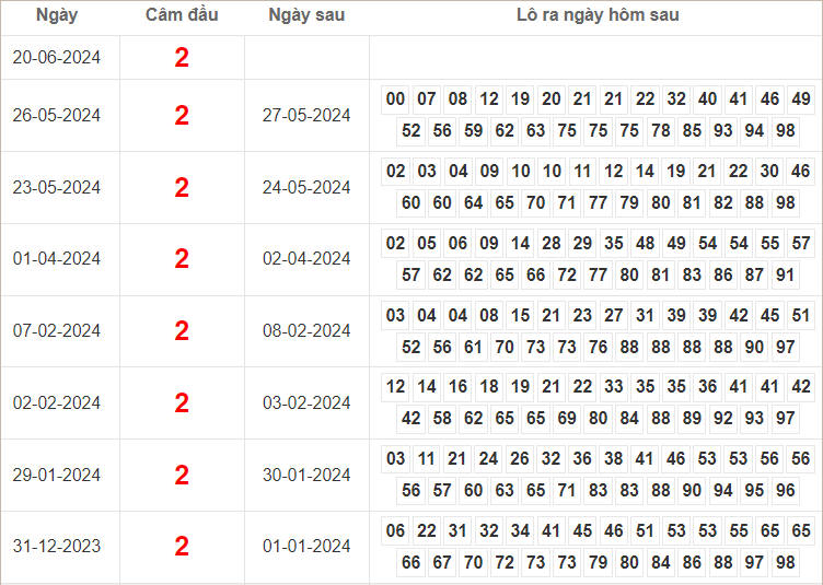 Soi cầu lô 2 nháy ngày 21/6/2024 hôm nay: