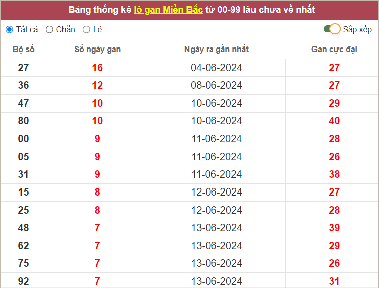 Dàn lô hôm nay miền Bắc bất bại ngày 21/6/2024