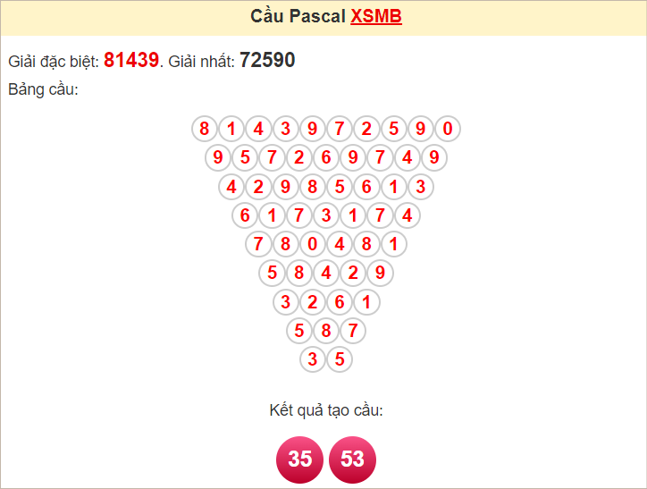 Kết quả từ soi cầu Pascale là cặp số may mắn: 35 53