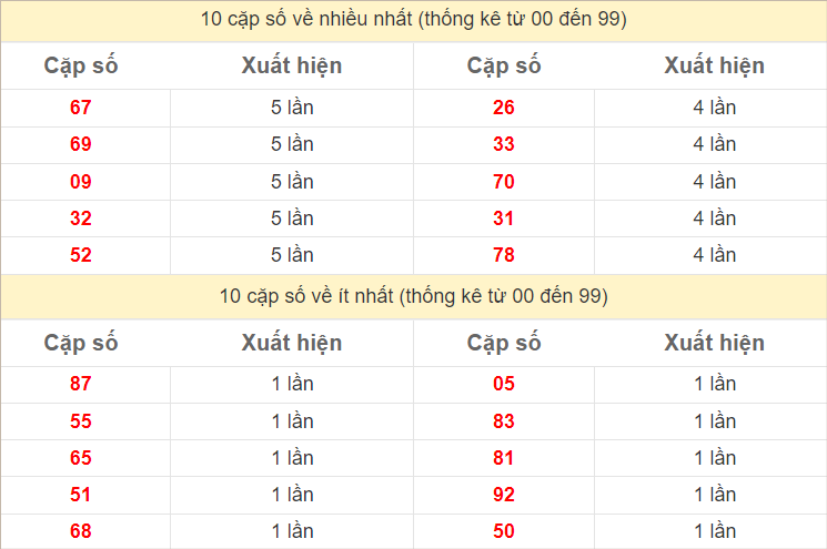 Các cặp số nóng nhất hôm nay: 21 – 97 – 06 – 14 – 27