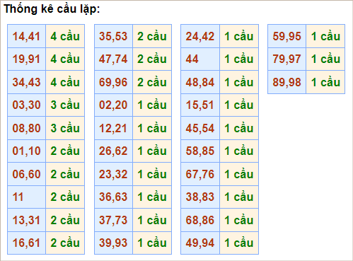 💰 Cầu hai nháy chạy 4 ngày liên tục trở lên: 14
