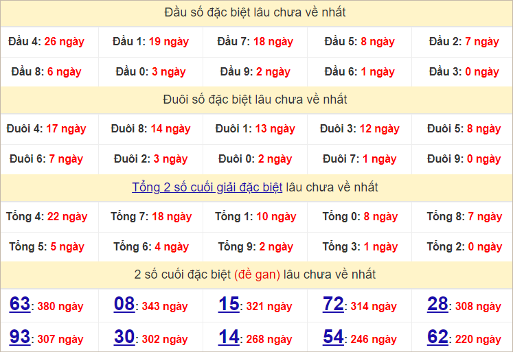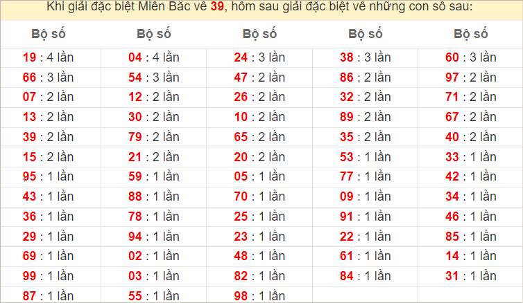 Thống kê hai số cuối giải đặc biệt miền Bắc ngày 21/6