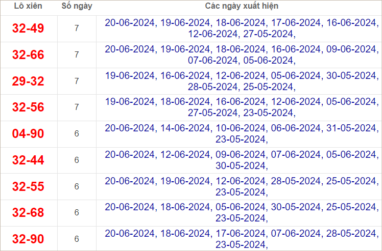 Cầu lô chạy 6 ngày qua (cầu dài nhất)