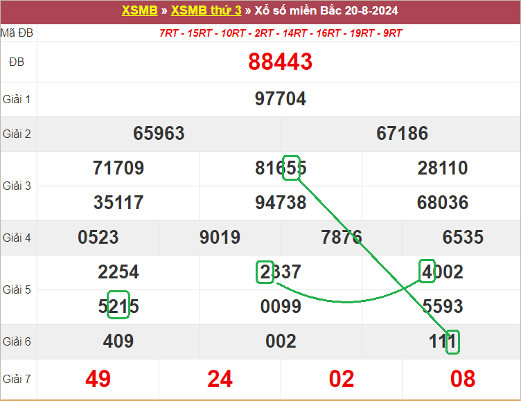 Xem lại bảng KQXSMB ngày 20-8-2024 hôm qua