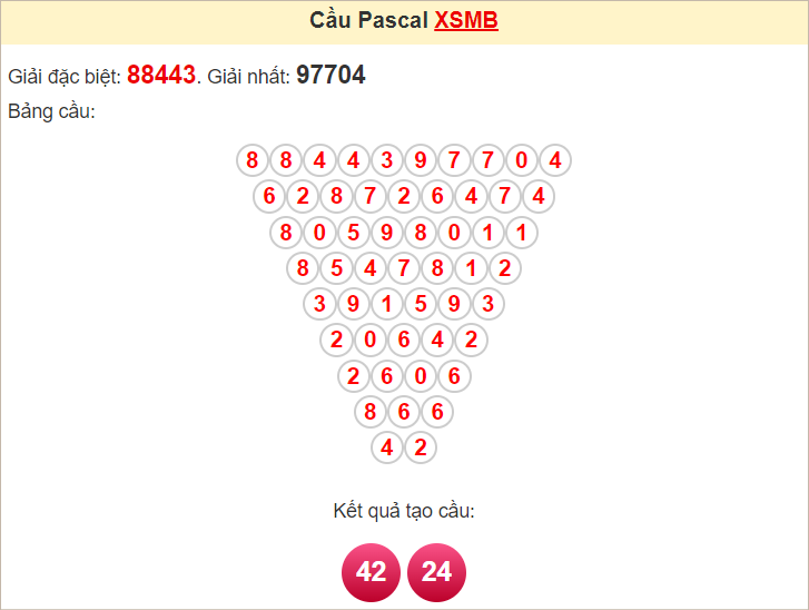 Kết quả từ soi cầu Pascale là cặp số may mắn: 42 24