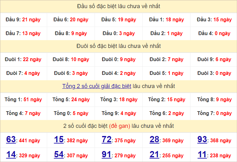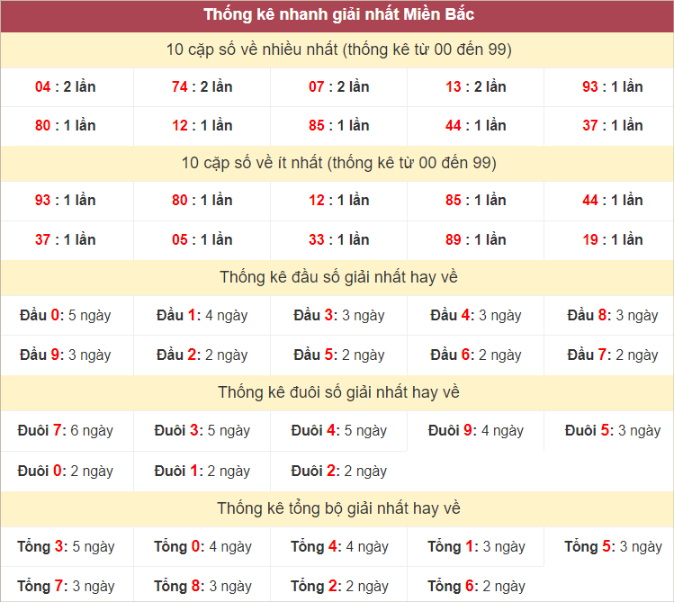 Thống kê hai số cuối giải đặc biệt miền Bắc ngày 21/8