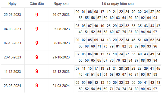 – Hôm qua xất hiện lô 09 – Hôm nay cân sẽ về 19 – 79
