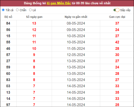 ⭐️ Lô gan miền Bắc lâu ra nhất: 84 – 56 – 15 – 55 – 46