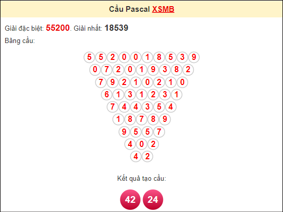 Kết quả từ soi cầu Pascale là cặp số may mắn: 42 24