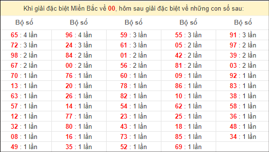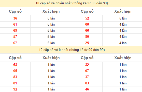 Các cặp số nóng nhất hôm nay: 00, 44, 99, 50, 87