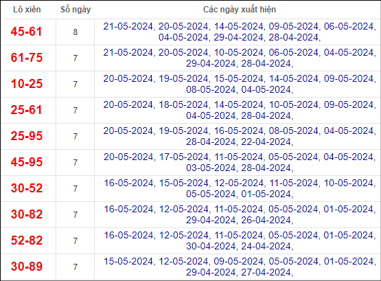 Cầu lô chạy 5 ngày qua (cầu dài nhất)