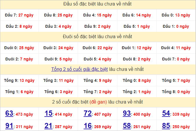 Thống kê hai số cuối giải đặc biệt miền Bắc ngày 22/9