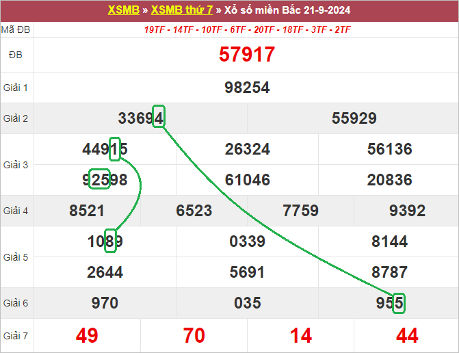 Xem lại bảng KQXSMB ngày 21-9-2024 hôm qua