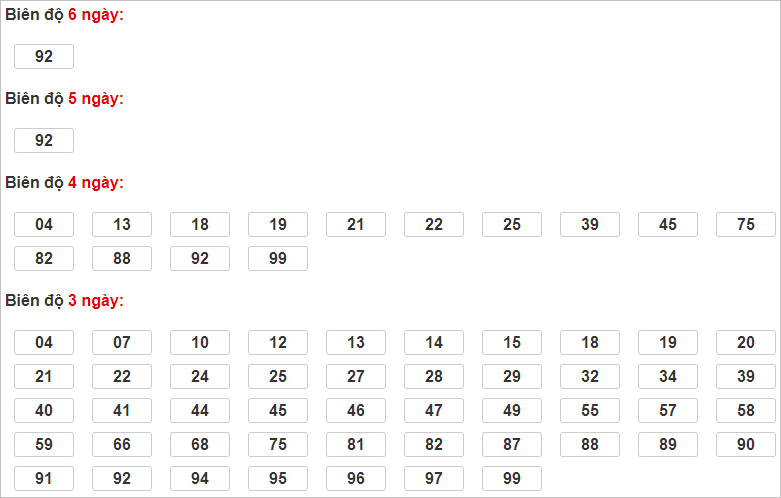 Cặp lô 39, 59 có độ dài 3 ngày.