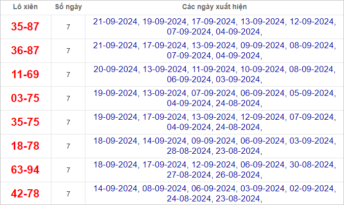 THỐNG KÊ LÔ TÔ KẾT QUẢ XSMB NGÀY 21-9-2024