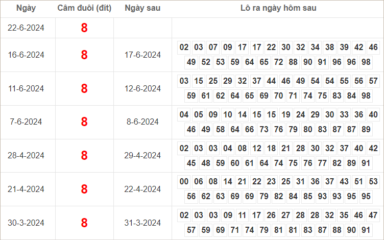 THỐNG KÊ LÔ TÔ KẾT QUẢ XSMB NGÀY 22-6-2024