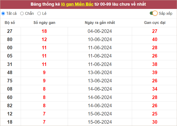 ⭐️ Lô gan XSMB lâu ra nhất: 27 – 80 – 00 – 05 – 31