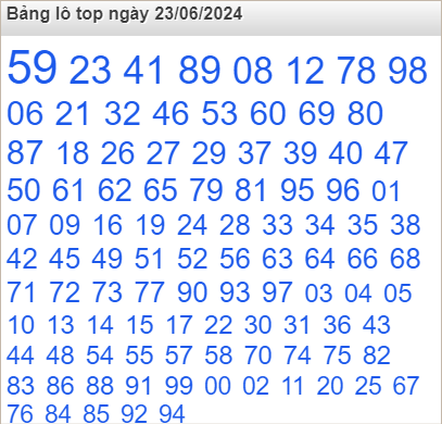 Các cặp số nóng nhất hôm nay: 59 – 23 – 41 – 89 – 08
