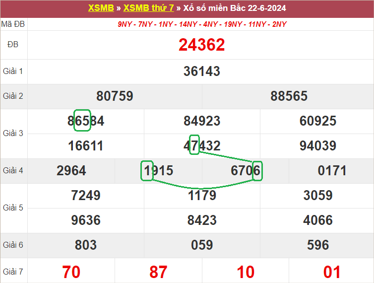 Xem lại bảng KQXSMB ngày 22-6-2024 hôm qua