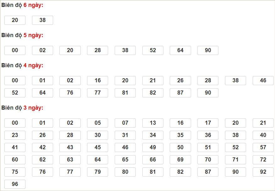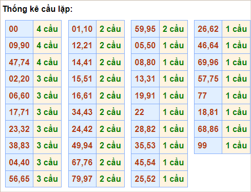 Cặp lô 01, 57 có độ dài 3 ngày.