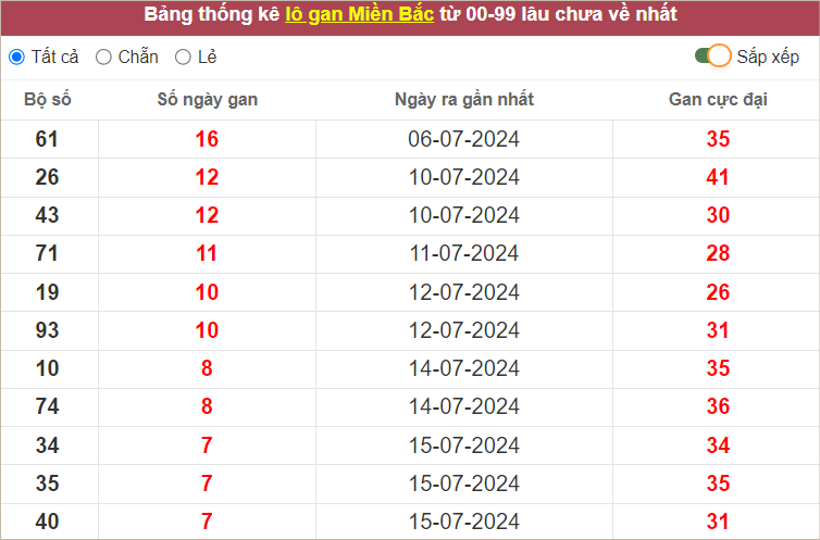 ⭐️Thống kê lô gan miền Bắc lâu ra nhất: 61 – 26 – 43 – 71 – 19