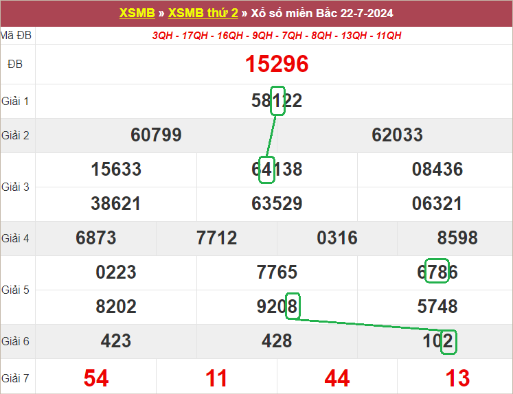 Xem lại bảng KQXSMB ngày 22-7-2024 hôm qua