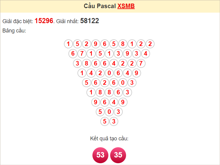 Kết quả từ soi cầu Pascale là cặp số may mắn: 53 35