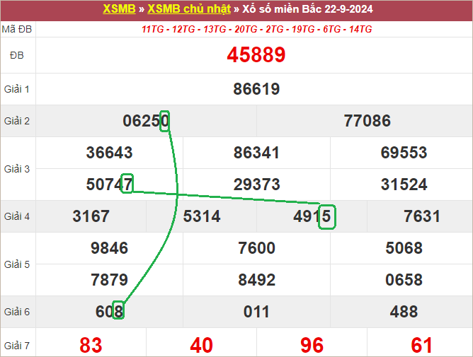 Xem lại bảng KQXSMB ngày 22-9-2024 hôm qua