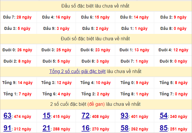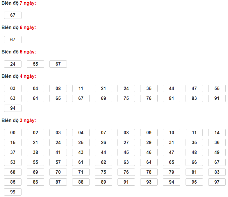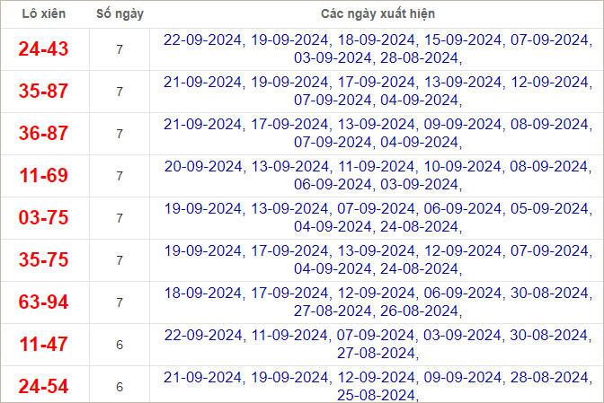Cặp lô 37, 46, 64, 69 có độ dài 3 ngày