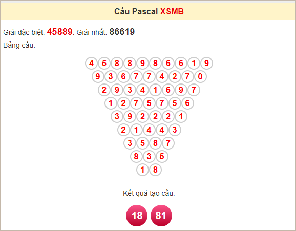 Kết quả từ soi cầu Pascale là cặp số may mắn: 18 81