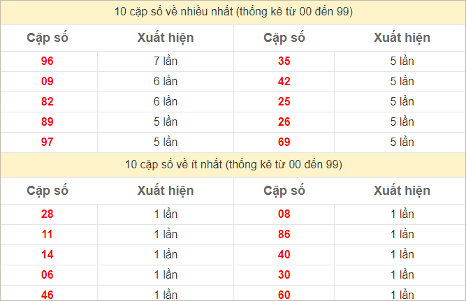 ⭐️ Thống kê tần suất các cặp lô về nhiều trong 10 ngày gần đây: 69 (7 lần), 43, 44, 86, 98 (6 lần), 19, 24, 25 (5 lần)