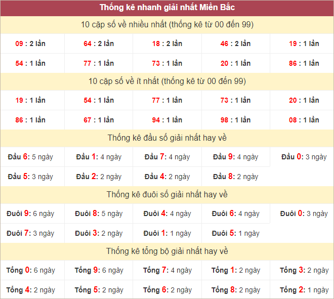 Thống kê lô tô miền Bắc hôm nay 23/9
