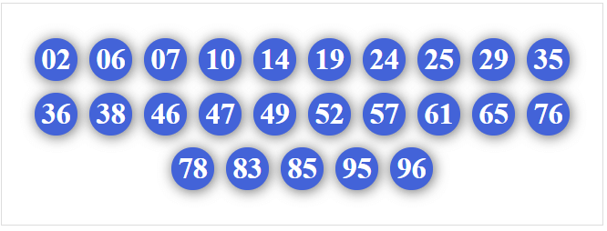01, 02, 03, 04, 05, 06, 07, 08, 09, 10, 12, 13, 14, 15, 16, 17, 18, 19, 60, 61, 62, 63, 64, 65, 67, 68, 69, 90, 91, 92, 93, 94, 95, 96, 97, 98