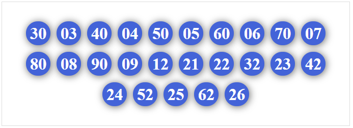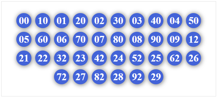 01, 02, 03, 04, 05, 06, 07, 08, 09, 20, 21, 23, 24, 25, 26, 27, 28, 29, 50, 51, 52, 53, 54, 56, 57, 58, 59, 90, 91, 92, 93, 94, 95, 96, 97, 98