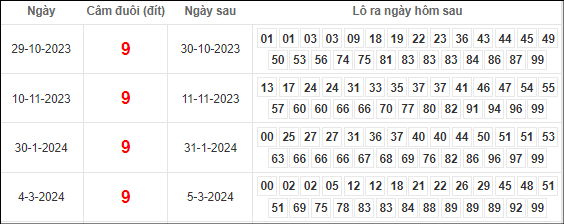- Xuất hiện đuôi lô câm 9, hôm sau đánh ngay con 09 – 29