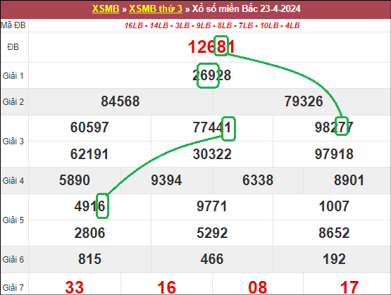Xem lại bảng KQXSMB ngày 23/4/2024 hôm qua