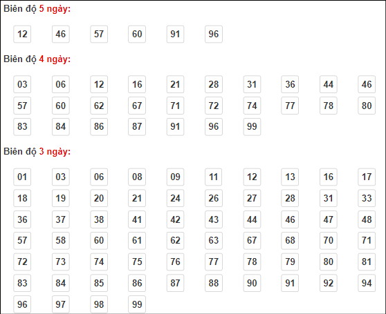Cặp lô 12 (vị trí ghép cầu 96-98), 46, 57, 60, 91, 96