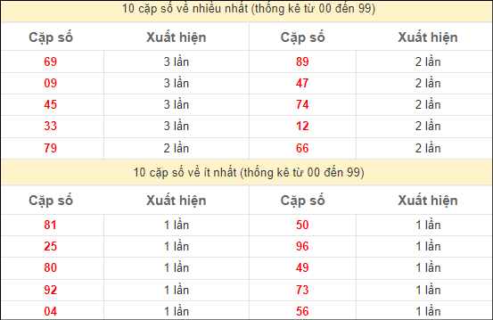 ⭐️ Thống kê các cặp lô về nhiều trong 10 ngày gần đây: 22, 92 (8 lần), 16, 69, 71 (7 lần), 33, 89 (6 lần), 18 (5 lần)