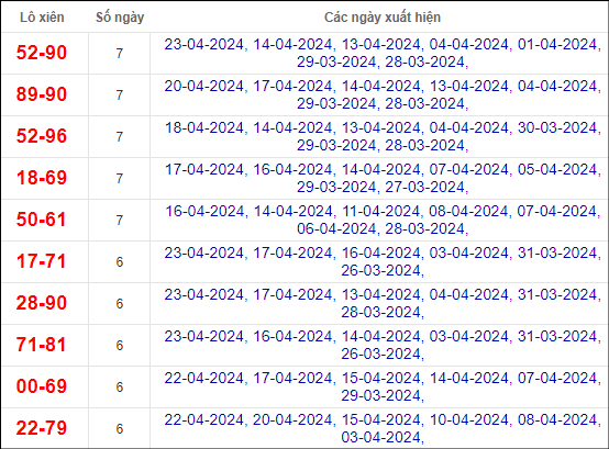 Dàn lô hôm nay miền Bắc bất bại ngày 24/4/2024