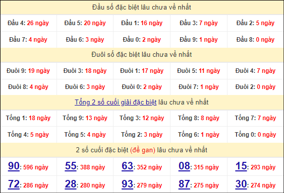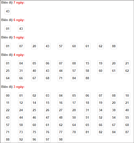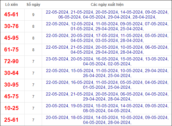 Cặp lô 16, 26, 44, 58, 61, 62, 75 có độ dài 3 ngày.