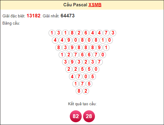 Kết quả từ soi cầu Pascale là cặp số may mắn: 82 – 28