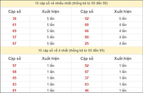 Thống kê hai số cuối giải đặc biệt miền Bắc ngày 24/5