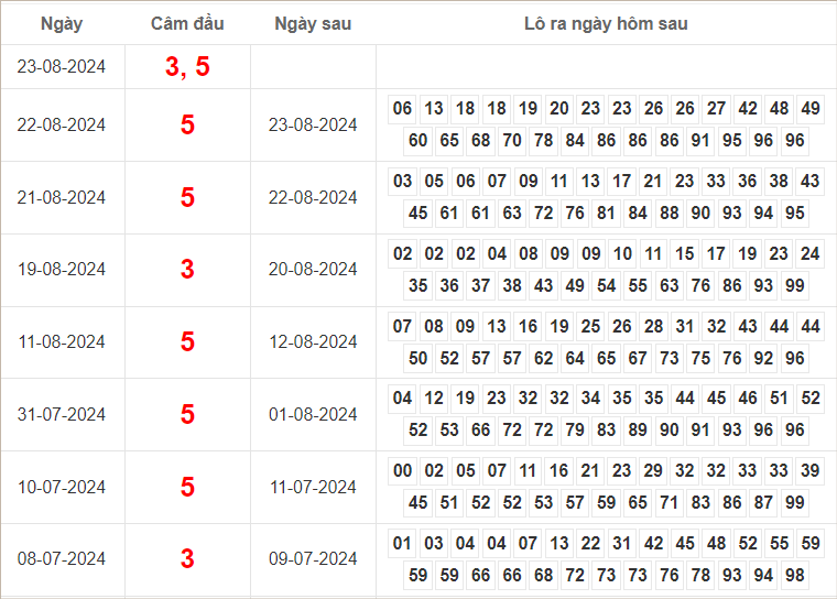 Dàn lô hôm nay miền Bắc bất bại ngày 24/8/2024
