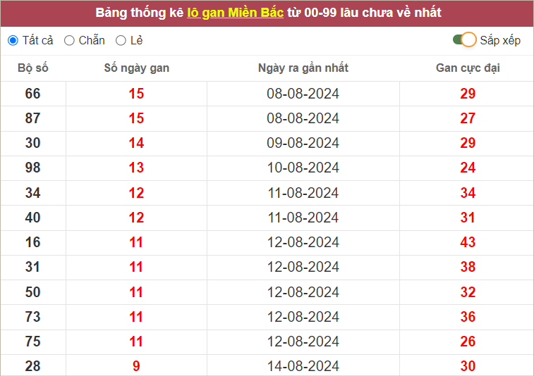 ⭐️Lô gan MB lâu ra nhất: 66 – 87 – 30 – 98 – 34