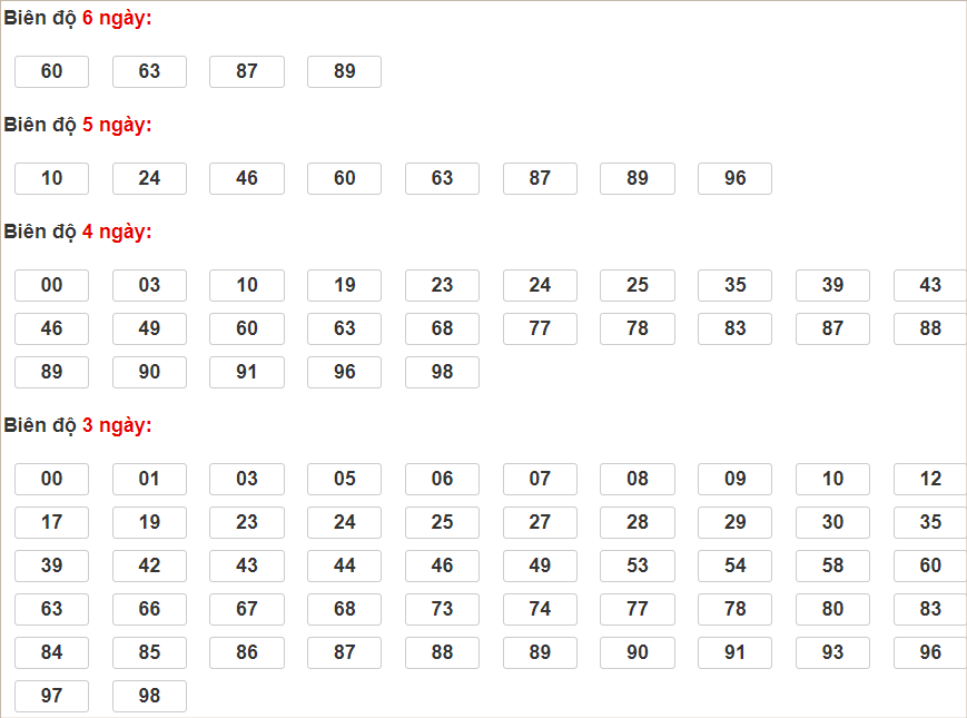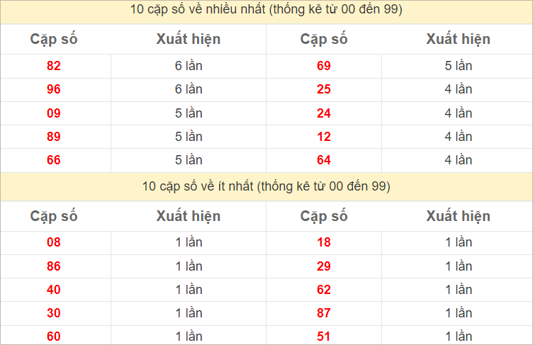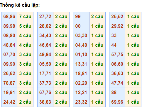 Cặp lô 60 (vị trí ghép cầu 20-106), 63 (53-62), 87 (32-105), 89 (42-97)