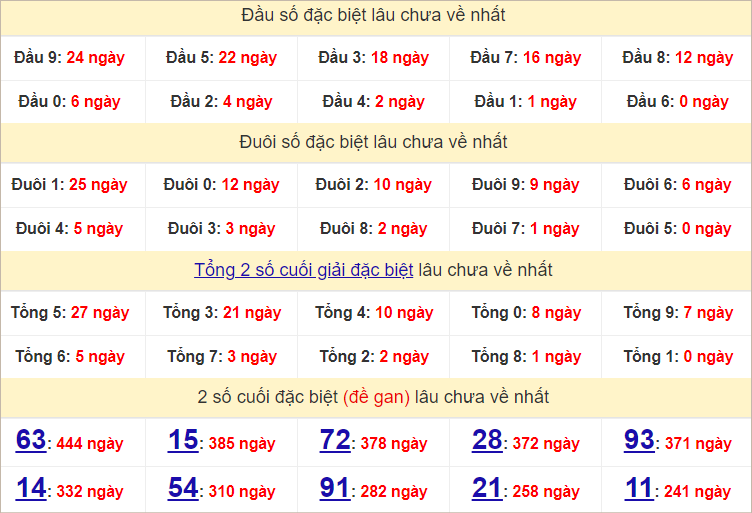 Thống kê hai số cuối giải đặc biệt miền Bắc ngày 24/8