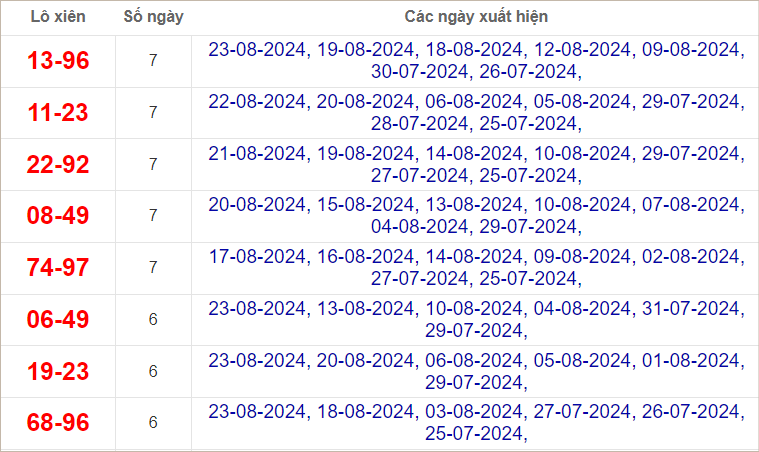Thống kê lô tô miền Bắc hôm nay 24/8