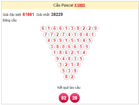Kết quả từ soi cầu Pascale là cặp số may mắn: 82 – 28