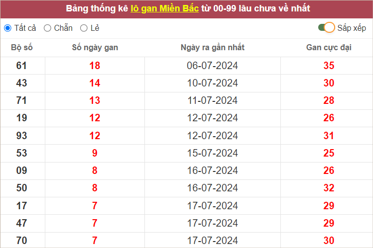 Thống kê lô tô miền Bắc hôm nay 25/7