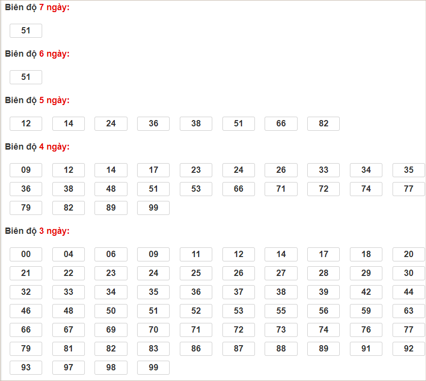 Cặp lô 44, 78, 84 có độ dài 3 ngày.